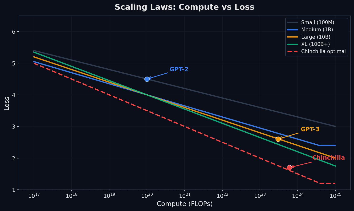 Chinchilla scaling laws: оптимальное соотношение параметров и данных.