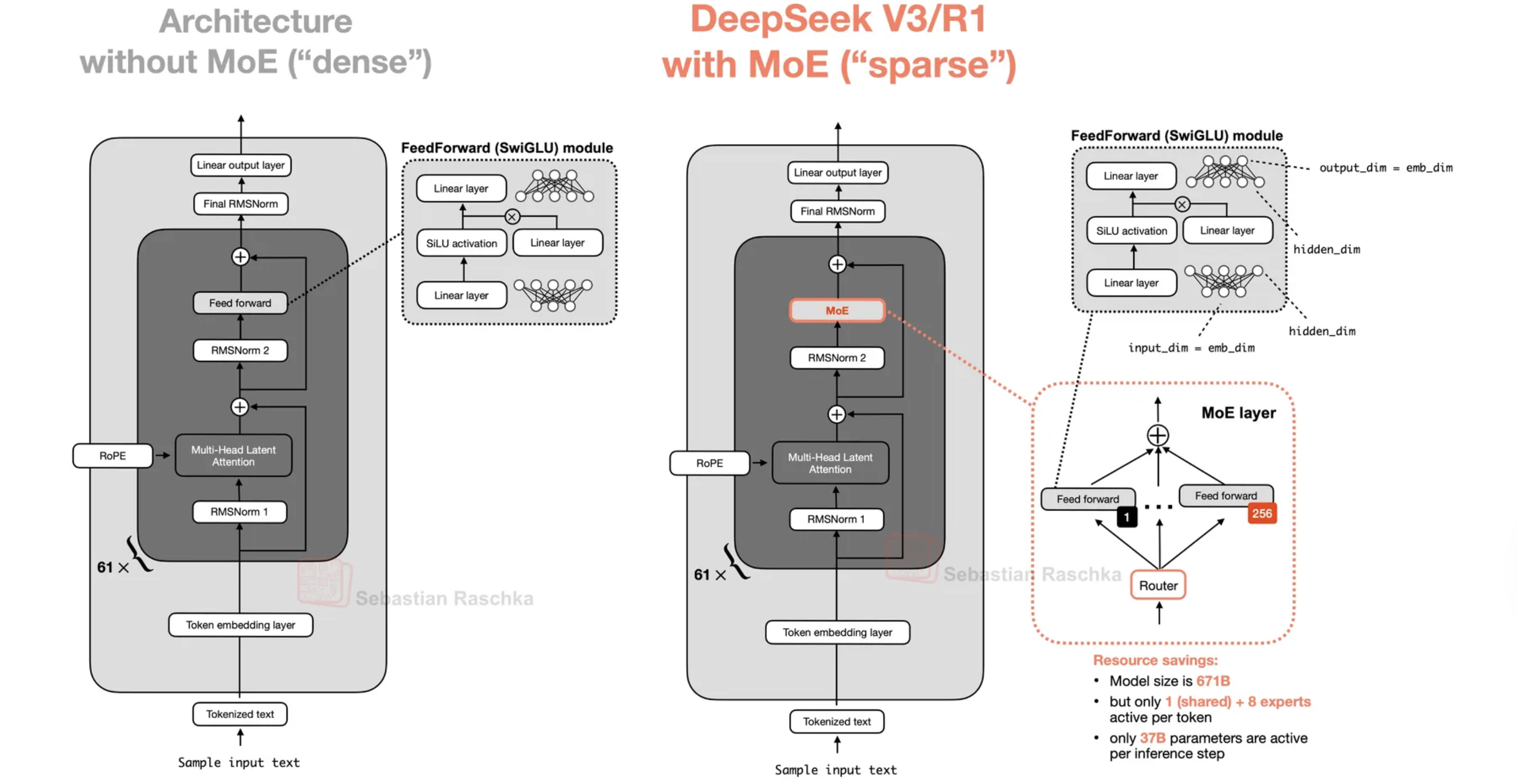 - Trade-off: все эксперты должны быть загружены в память → MoE требует больше RAM/VRAM, чем dense с такими же active params